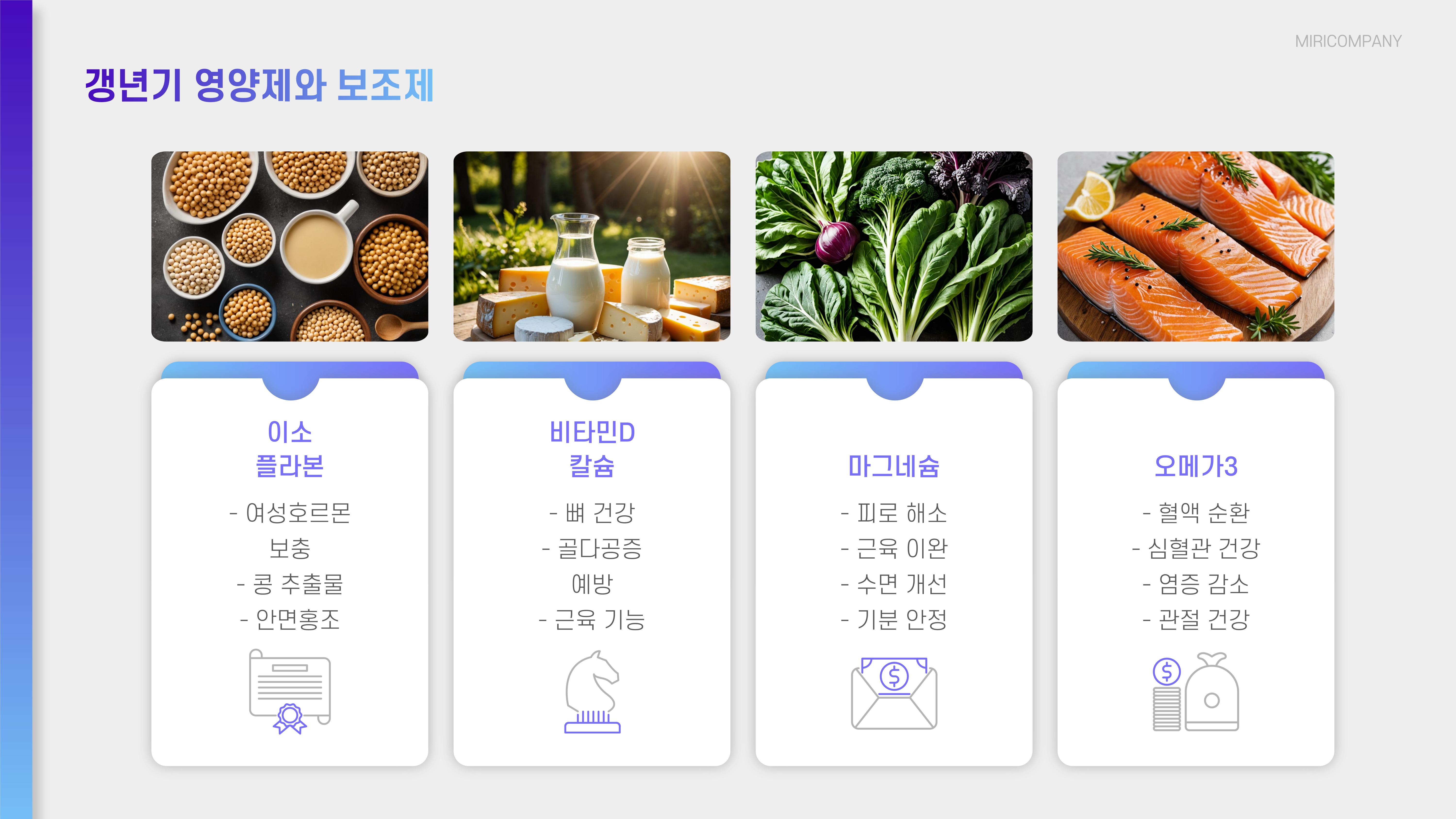 ✔ 칼슘, 비타민D(멸치, 우유, 달걀) → 골다공증 예방
