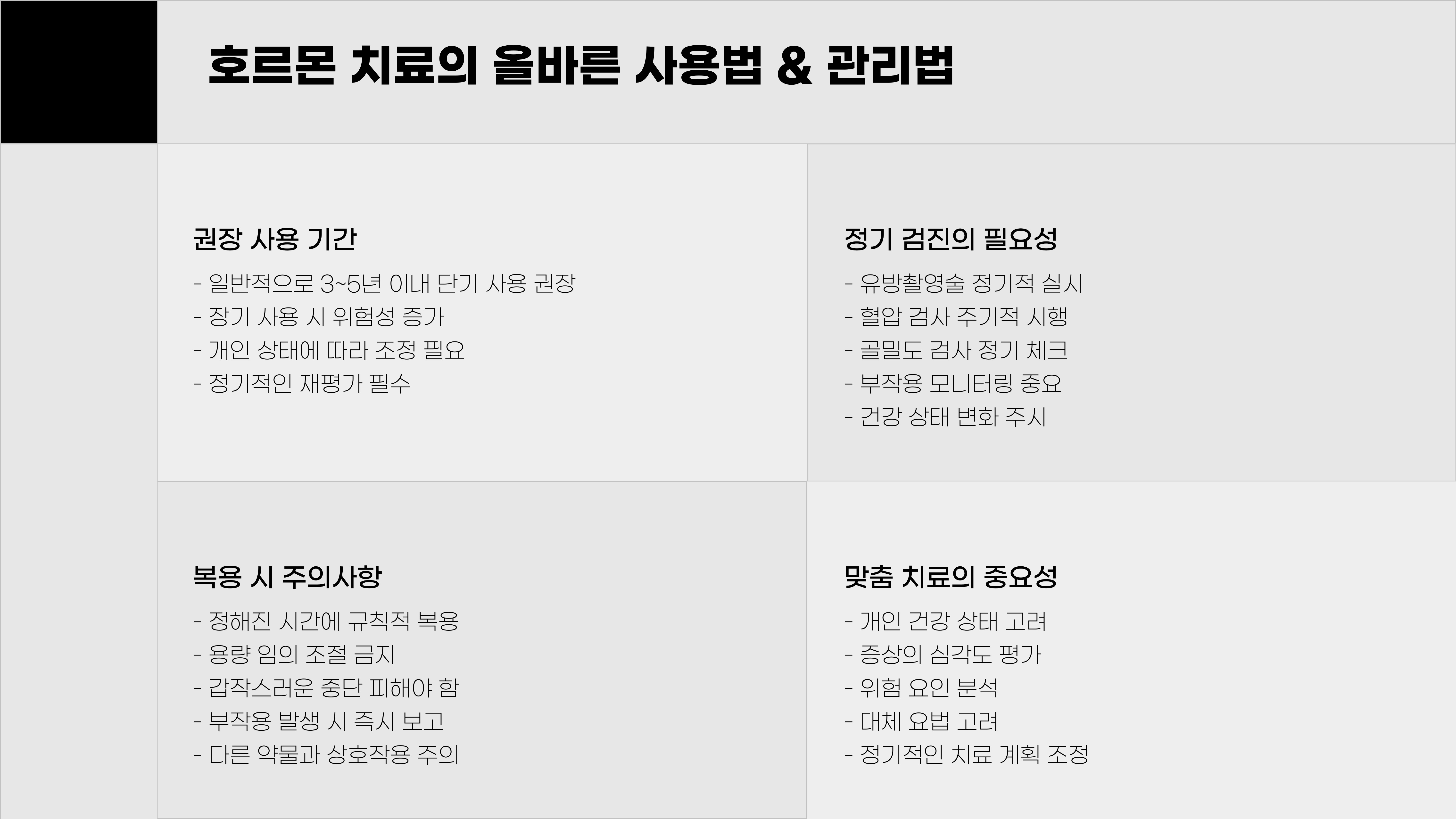 💡 TIP: 호르몬 치료를 고려할 때는 개인 건강 상태에 따라 맞춤 처방이 필수입니다.