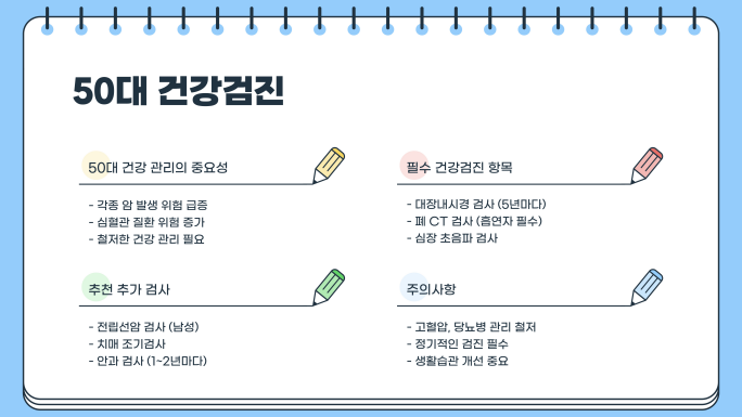 ✔ 50대: 대장내시경 필수, 심혈관 질환 검진 추가