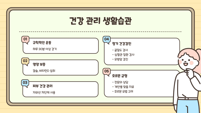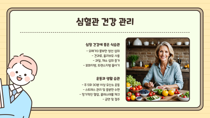 💡 TIP: 혈압과 콜레스테롤 수치를 정기적으로 체크하세요.