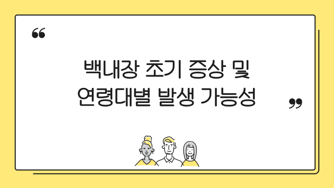 | 40대 | 초기 백내장 가능성이 증가하지만, 증상이 미미한 경우가 많음 |